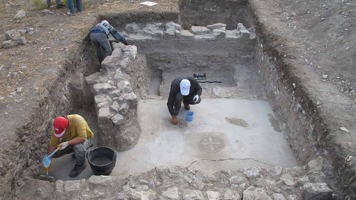 UNESCO‘nun 1998 yılında ‘Dünya Kültür Mirası Listesi’ne aldığı 5 bin yıllık medeniyete ev sahipliği yapan Troya Ören Yeri kazı çalışmalarıyla, tarihe ışık tutmaya devam ediyor. Bu yılki kazı çalışmaları sırasında ‘Aşağı Şehir’ bölgesinde Troya Müzesi Müdürlüğü ile Troya Ören Yeri Kazı Başkanlığı tarafından yapılan kurtarma kazısında, 1500 yıllık Helenistik ve Roma dönemlerine ait bir yapının zemininde mozaik bulundu.