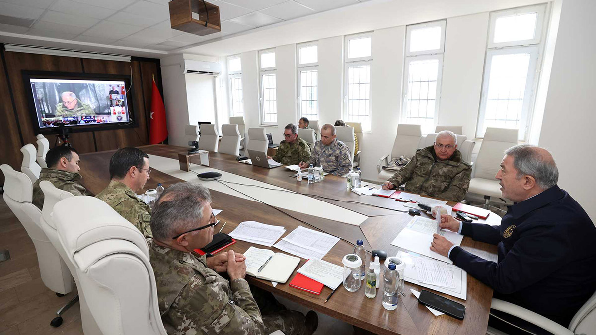 Milli Savunma Bakanı Hulusi Akar, Hatay’ın Serinyol ilçesindeki 8’inci Komando Tugay Komutanlığı’nda Genelkurmay Başkanı Orgeneral Yaşar Güler, kuvvet komutanları, Bakan Yardımcısı Yunus Emre Karaosmanoğlu ve deprem bölgesindeki birlik komutanları ile video konferans toplantısı gerçekleştirdi. Bakan Akar, Türkiye’nin ‘asrın felaketi’ ile karşı karşıya olduğunu belirterek Türk milletine baş sağlığı, hayatını kaybedenlere rahmet, yaralılara şifa dileklerini iletti. Akar, MSB ve TSK’nın depremin hemen ardından harekete geçtiğini kaydederek, “TSK olarak ilk andan itibaren bu acıyı hafifletmek ve vatandaşımıza yardım etmek için her türlü çabayı gösteriyoruz. Mehmetçik, terörle mücadele ve hudut güvenliğinde olduğu gibi ilk andan itibaren depremle mücadelede de yapılması gereken ne varsa yaptı ve yapmaya devam ediyor” diye konuştu.