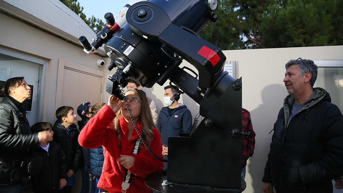 TÜBİTAK Ulusal Gözlemevi’nin Akdeniz Üniversitesi yerleşkesindeki Bilim ve Teknoloji Merkezi’nde (BİTOM), 2022’nin son günlerinde gökyüzünün en önemli gök olaylarından biri olan ve çıplak gözle 5, teleskop veya dürbünle de 2 olmak üzere 7 gezegenin bir anda görülebildiği ender gökyüzü olayı için halk günü etkinliği düzenlendi. 35 santim ayna çapına sahip teleskop ile hem çocuklar hem de gökyüzü meraklısı genç öğrenciler ve büyükleri etkinliğe büyük ilgi gösterdi. TÜBİTAK Ulusal Gözlemevi Müdür Vekili Dr. Tuncay Özışık ve uzmanlar, dün akşam teleskopla gezegenler ve Ay gözlemi yaptırarak, katılımcıları bilgilendirdi.