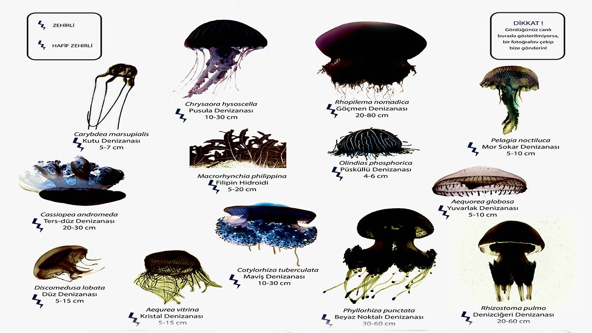 TÜDAV‘ın Ulusal Denizanası ve Benzeri Türler İzleme Programı’nın Akdeniz, Ege, Marmara ve Karadeniz’de görülen ve birçoğu zehirli olan denizanaları ile ilgili yürütülen ‘Ya Yakarsa Projesi’ kapsamında birçok denizanasının kaydı oluşturuldu. Dünyanın birçok yerinde de görülmekle beraber Akdeniz, Ege, Karadeniz ve Marmara’da toplam 18 tür denizanası ile 5 tür denizanası benzeri jelatimsi tür bulunuyor. Bu türlerden bazıları zehirli, bazıları da özellikle balıkçılık ve deniz ekosistemi açısından büyük tehlike taşıyor.