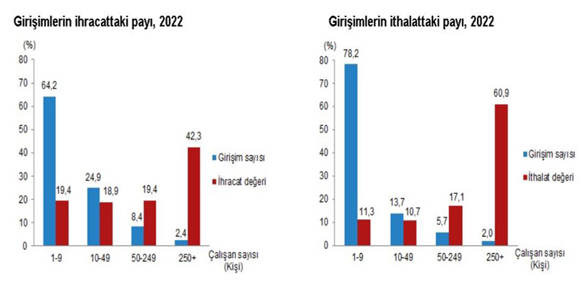 Türkiye İstatistik Kurumu’nun (TÜİK) verilerine göre 2022 yılında 114 bin 155 girişim ihracat , 173 bin 302 girişim ithalat yaptı.