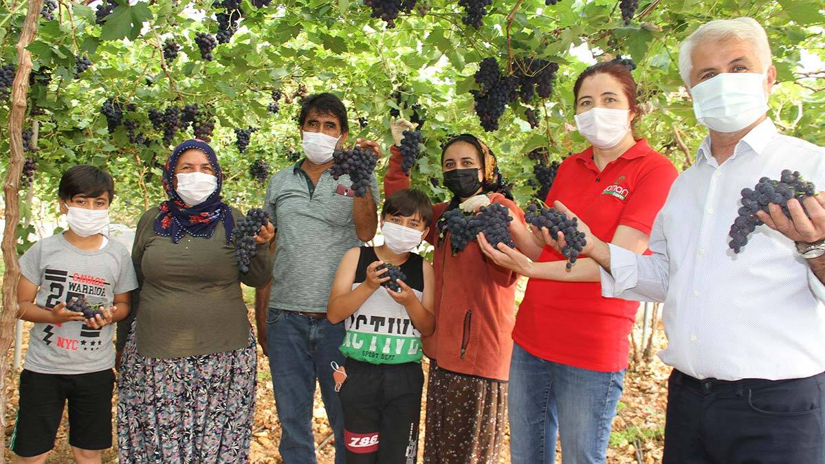 Başkan Şahin, “İlçemizde erik, kayısı ve beyaz üzümün ardından Türkiye’nin ilk turfanda siyah üzüm hasadını Kocahasanlı Mahallesi’nde gerçekleştirmenin mutluluğunu yaşıyoruz. Narenciye ve domates üreticiliğine alternatif ürün olarak yetiştirilen siyah üzüm yetiştiriciliği ilçemizde her geçen yıl artmaktadır. İlçemizde 200 dönüm serada üzüm yetiştiriciliği yapılmaktadır ve yılda yaklaşık 800 ton üzüm üretimi gerçekleştiriliyor. Son derece kaliteli bir şekilde yetiştirilen turfanda siyah üzümün kilosu dalında 30 liradan satılmaktadır. Ben bütün üreticilerimize bol bereketli bir sezon diliyorum” dedi.