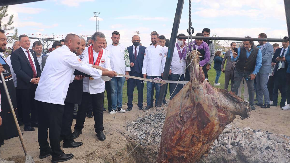 Pişirilmesi için hazırlanan boğa, caraskal ile yarısı dışarıda kalacak şekilde iki ayağından bağlanarak kuyuya yerleştirildi. Pişmeye başlayan boğa, bağlandığı yerdeki etlerin kopmasıyla kuyuya düştü. Festivalde görevli aşçılar, boğayı çukurdan çıkarmak için uzun uğraş verdi. Caraskal ile yeniden kaldırılan boğa, kaburgalarından asılarak pişirildi. Boğanın eti, cağ kebabı şeklinde kesilerek ikram edildi.