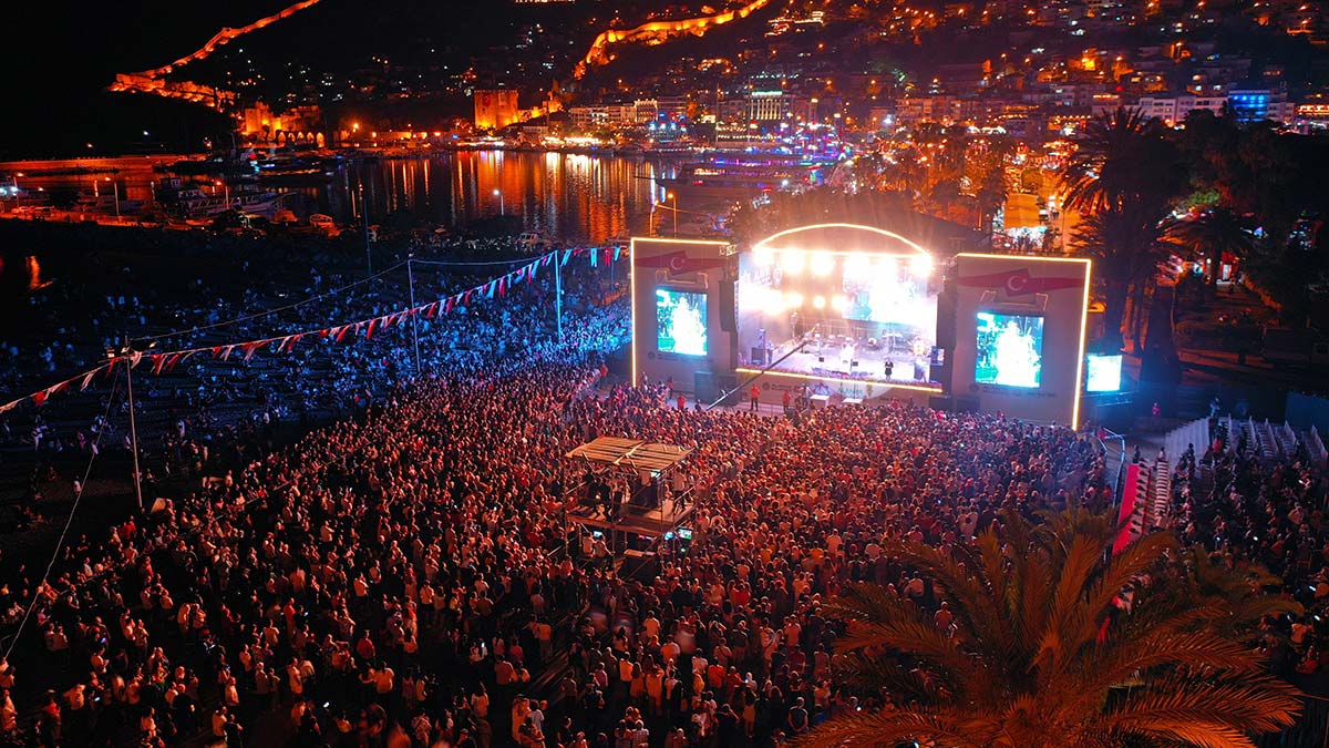 Sembolik yörük göçünü tamamlayan topluluk, İskele Şelale önünde düzenlenen etkinliğe katıldı. Ankara Devlet Opera ve Balesi solistleri 3 Anatolian Sopranos’un konseri yoğun ilgi gördü. Alanya Belediye Başkanı Adem Murat Yücel, “Sizlerin ve yabancı konuklarımızın katılımıyla Turizm ve Sanat Festivali’mizin çıtasını hep bir adım daha yükseğe taşıyarak, her yıl daha da artan coşku ve heyecanla gerçekleştiriyoruz” dedi.