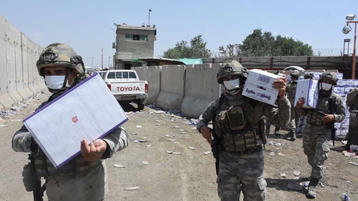 Afganistan Türk Görev Kuvveti Komutanlığı bünyesinde görev yapan Türk askerleri, ülkedeki çalışmalarını sürdürüyor. Hamid Karzai Uluslararası Havalimanı’nda diğer ülke askerleri ile iş birliği içerisinde çalışmalarına devam eden Türk askeri, ülkeden ayrılmak için havalimanının önünde bekleyenlere yardımcı oluyor. 35 dereceyi aşan sıcaklık ve yoğunluktan dolayı zor anlar yaşayanlara su ve yiyecek dağıtıyor. Ayrıca, havalimanı kontrol noktalarında ülkeden ayrılmak isteyenlerin pasaport ve uçuş izinlerine dair kontrollerini de sürdürüyor. Öte yandan, Türk askeri, havalimanı çevresindeki devriye ve tahliye çalışmasının yanı sıra askeri hat içerisinde yer alan ‘Ankara’ adlı karargah binasında da yoğun mesaisini sürdürüyor.
