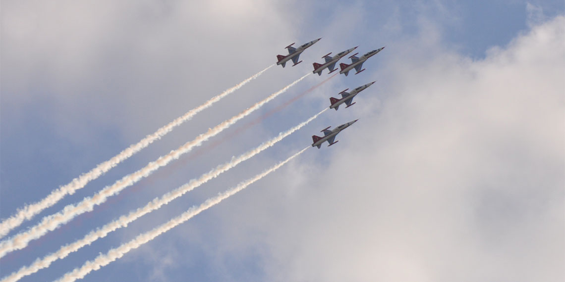 Karaman’da 747’nci Türk Dil Bayramı kutlamaları kapsamında düzenlenen törende Hava Kuvvetleri Komutanlığı’nın akrobasi timi Türk Yıldızları gösteri yaptı. Gösteri yüzlerce kişi tarafından ilgiyle izlendi.