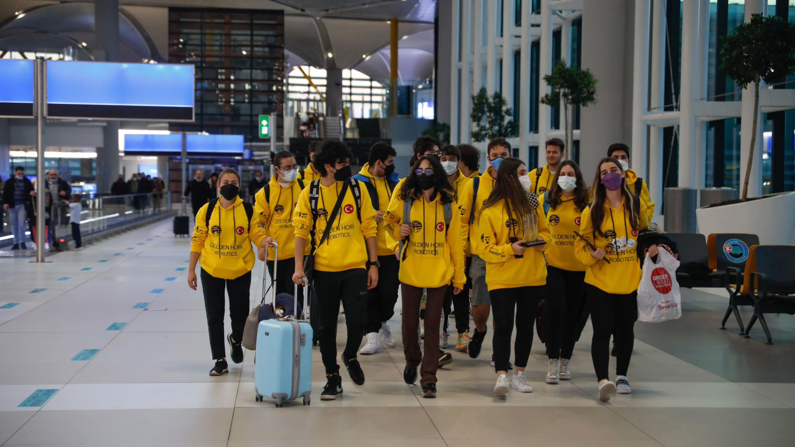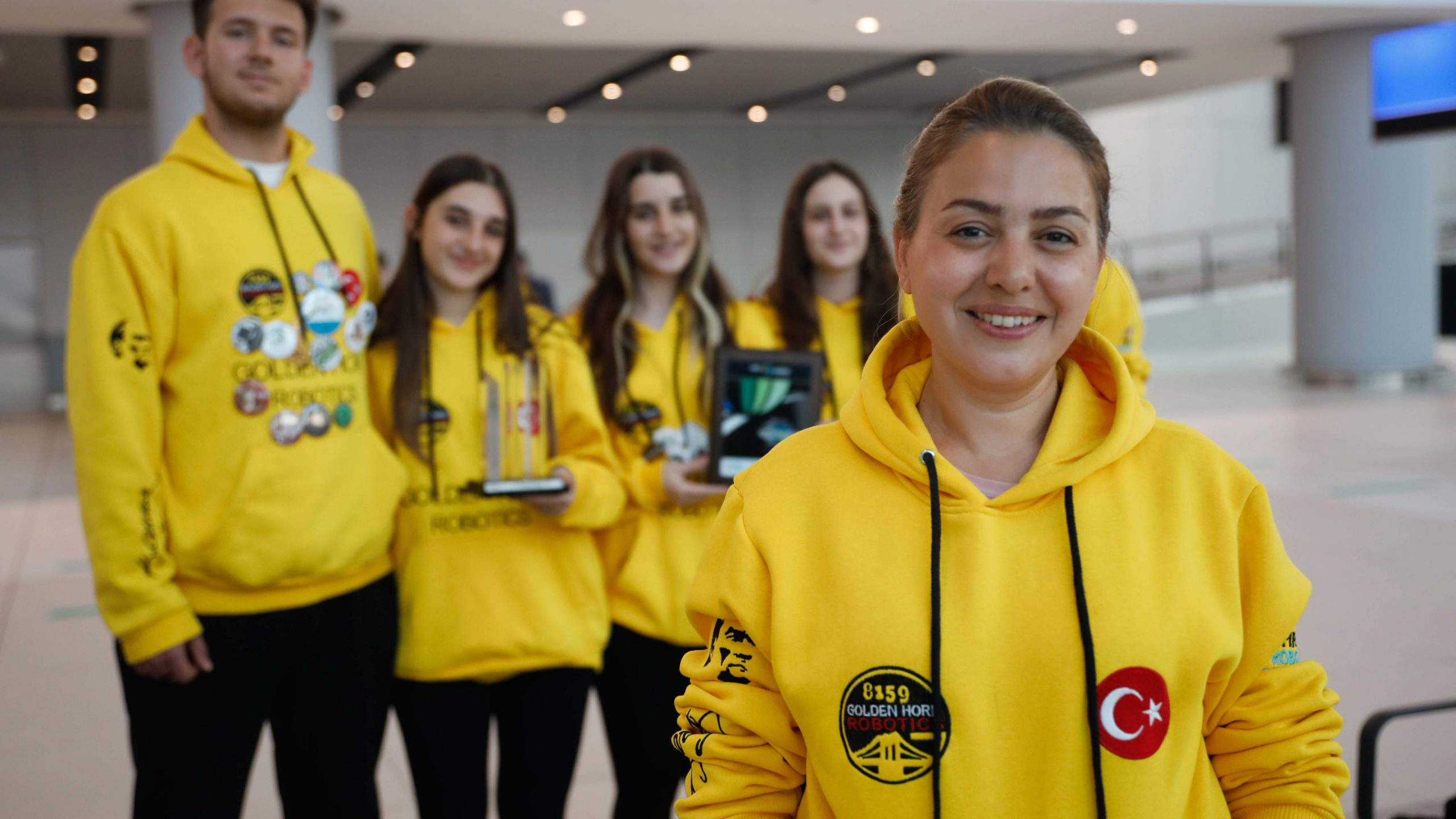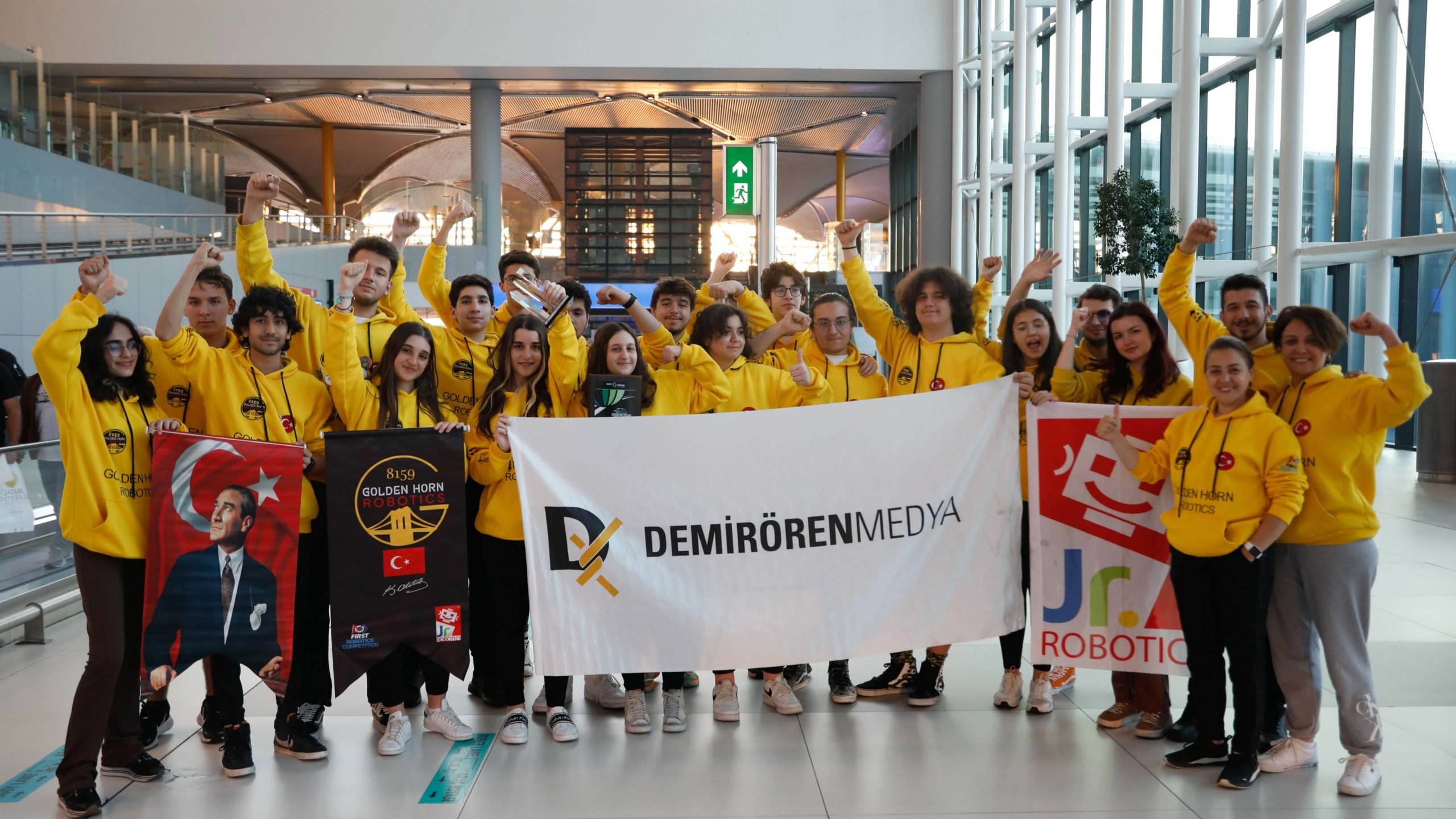 Türkiye’yi ABD’de temsil eden Türk robotik takımı Golden Horn Robotics, Türk Hava Yolları’nın tarifeli seferiyle dün 18.20’de İstanbul geldi. Teknoloji temelli çalışmalar yapan farklı okullardan 18 lise öğrencisinden oluşan robotik takımı İstanbul Havalimanı’nda aileleri tarafından karşılandı. Demirören Medya’nın sponsor olarak destek verdiği Golden Horn Robotics takımının yöneticileri ve öğrencileri, 6 ülkeden 42 takımın katıldığı ‘First Robotics Competition San Francisco Regional’da elde edilen büyük başarıyı anlattı.