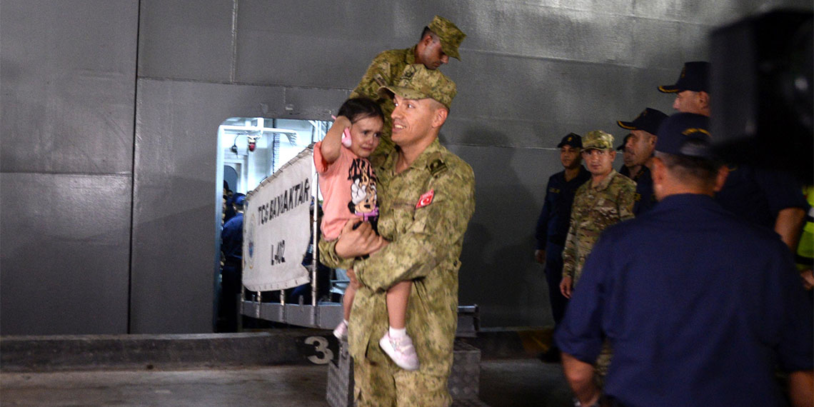 Lübnan’da mahsur kalan Türk vatandaşlarını taşıyan TCG Bayraktar, Mersin Limanı’na ulaştı. Türk vatandaşları gemilerden tahliye edilip, otobüslerle gidecekleri memleketlerine uğurlandı.