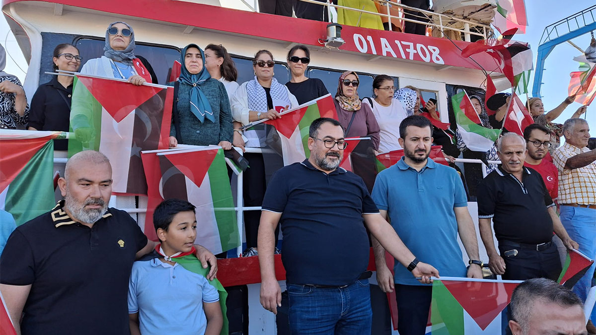 Konuşmaların ardından, Türk ve Filistin bayrakları sallayan gruplar slogan atarak teknelerle Akdeniz’e açıldı. Sahilde tur atan tekneler etkinliğin sonunda kıyıya döndü.