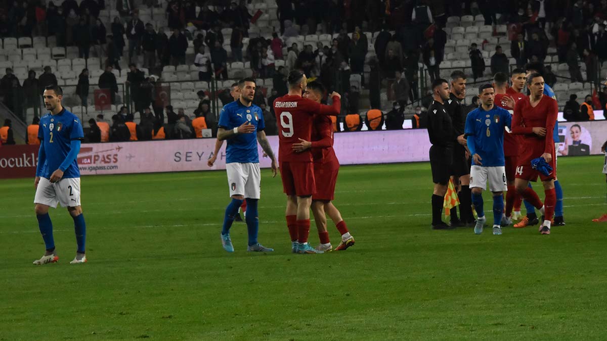 2022 Dünya Kupası Avrupa Elemeleri play-off turu yarı finalinde deplasmanda Portekiz’e 3-1 mağlup olarak Dünya Kupası şansını kaybeden Türkiye, Kuzey Makedonya’ya 1-0 mağlup olarak aynı kaderi paylaşan son Avrupa şampiyonu İtalya ile Konya’da özel maçta karşı karşıya geldi. A Milli Takım 4’üncü dakikada Cengiz Ünder’in golüyle öne geçti. 35’inci dakikada Cristante’nin golüyle beraberliği yakalayan İtalya, 38 ve 69’uncu dakikada Raspadori’nin golleriyle üstünlüğü ele geçirdi. Ay-yıldızlı ekip 83’üncü dakikada Serdar Dursun’un golüyle farkı 1’e indirse de bu gol mağlubiyeti önlemeye yetmedi. Karşılaşma İtalya’nın 3-2 üstünlüğüyle sona erdi.