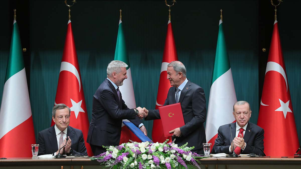 Cumhurbaşkanı Recep Tayyip Erdoğan, Cumhurbaşkanlığı Külliyesi’nde İtalya Başbakanı Mario Draghi, ile baş başa görüşmenin ardından Türkiye- İtalya Üçüncü Hükümetlerarası Zirve Toplantısı’na başkanlık etti. Erdoğan ve Draghi, çeşitli alanlarda iş birliklerini içeren 9 anlaşmanın imza töreninde konuştu. Erdoğan, Stratejik ortak ve NATO müttefiki İtalya ile 3’üncü Hükümetlerarası Zirve Toplantısını gerçekleştirdiklerini söyleyerek, “2008 yılından bu yana gerçekleştirdiğimiz Hükümetlerarası Zirve Toplantıları ilişkimizin kapsamlı biçimde ele alındığı en üt düzey platformu temsil ediyor.
