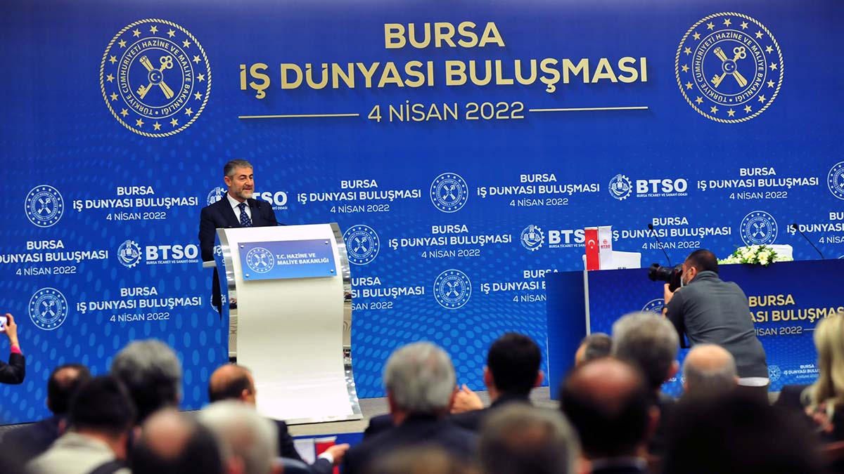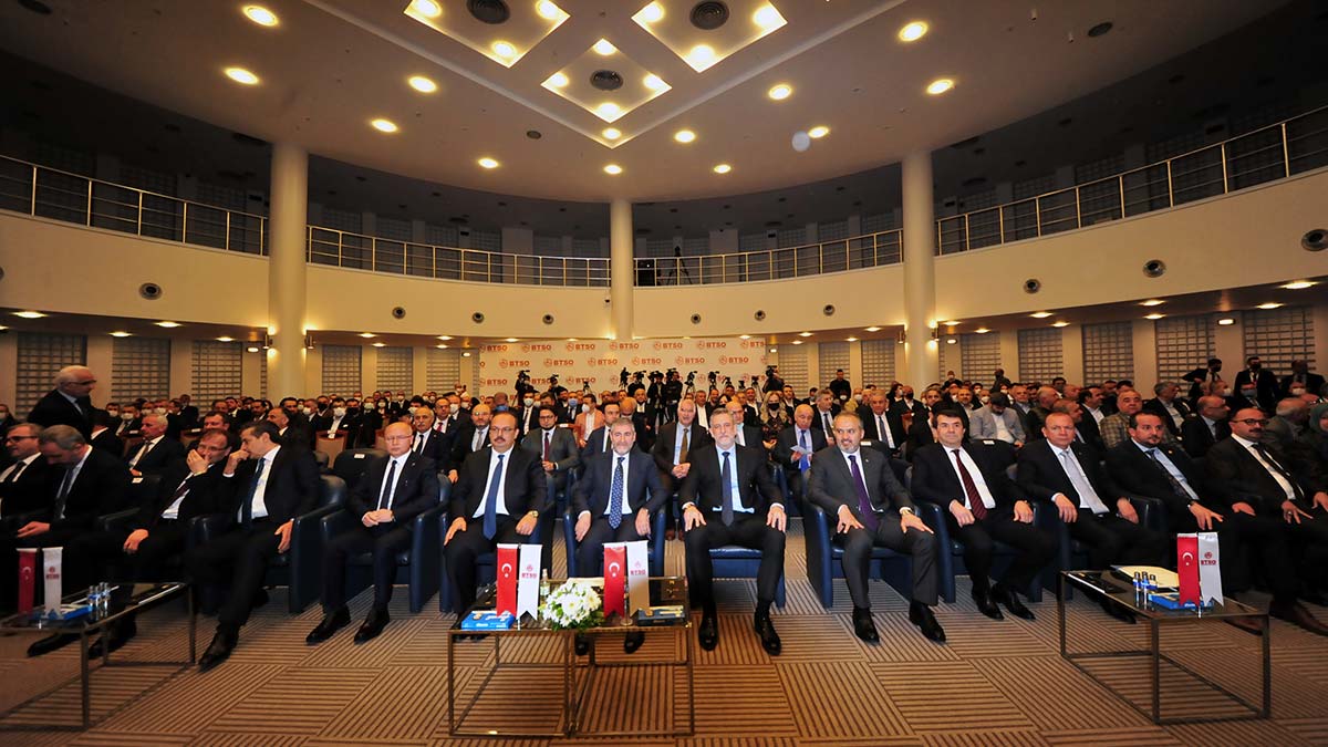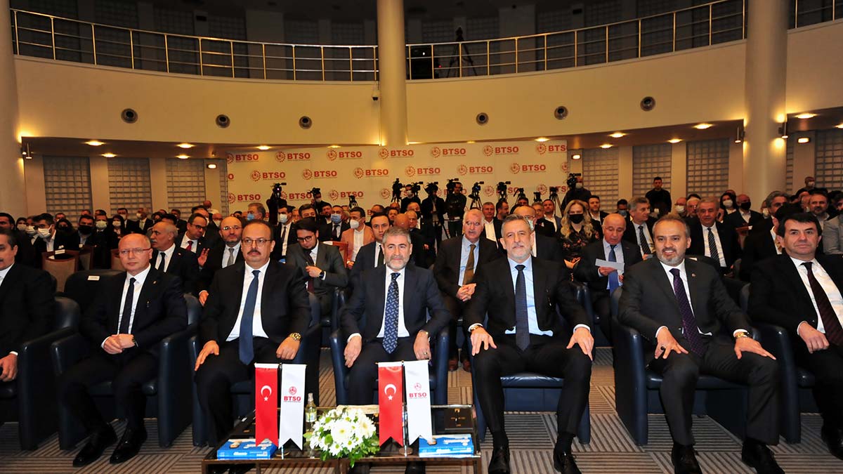 Hazine ve Maliye Bakanı Nureddin Nebati, Bursa Ticaret ve Sanayi Odası’nda İş Dünyası ile İstişare Toplantısı’na katıldı. Bakan Nebati’ye Bursa Valisi Yakup Canbolat, Bursa Büyükşehir Belediye Başkanı Alinur Aktaş, AK Parti Bursa milletvekilleri ve BTSO Başkanı İbrahim Burkay eşlik etti. Bakan Nebati, toplantının açılış konuşmasında salonda bulunan iş insanlarına seslendi. İhracatta tarihi rekora imza attıklarını söyleyen Bakan Nebati, şöyle konuştu: