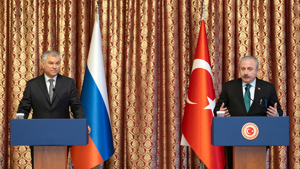 Rusya Devlet Duması Başkanı Volodin de Türkiye’de olmaktan memnuniyet duyduğunu belirterek, “Pandemi ne yazık ki hem vatandaşların sağlığını, ekonomiyi hem de parlamentolar arası ilişkileri olumsuz etkiledi. Bizim ilişkilerimizin lokomotifleri devletlerimizin başkanlarıdır. Sayın Putin ve Sayın Erdoğan’dır. Önceki yönetimlere göre; ilişkilerimiz çok daha faal, daha aktif bir ivme kazanıyor. Bizim de devlet başkanlarımızın verdiği talimatlara yasal bir çerçeve hazırlamalıyız.