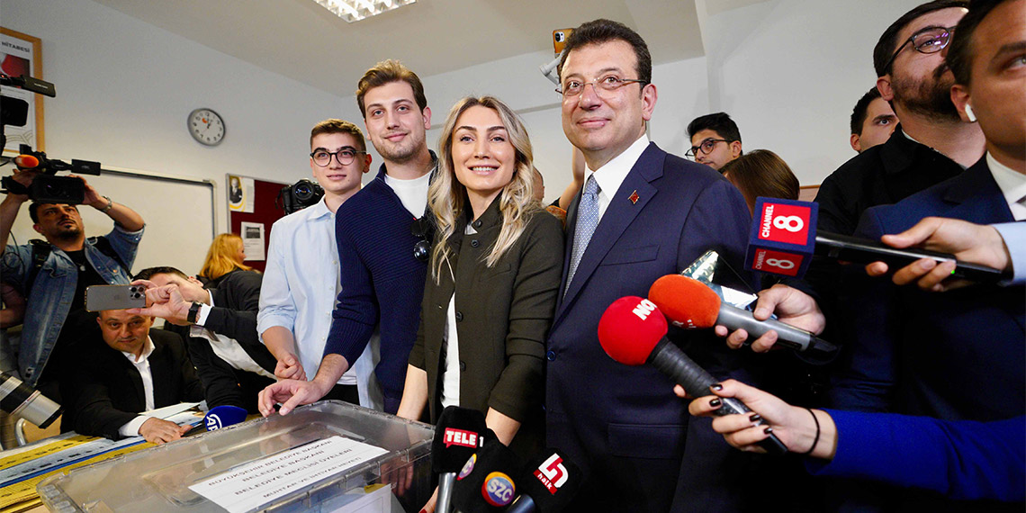 Mahalli İdareler Genel Seçimleri’nde gayri resmi sonuçlara göre, İstanbul’da İBB Başkanlığı’nı Ekrem İmamoğlu yeniden kazandı. İmamoğlu’nu destekleyenler akşam saatlerinden itibaren Saraçhane’de İBB Başkanlık binası önünde toplanmaya başladı. İmamoğlu da CHP İstanbul İl Başkanlığı’ndaki açıklamalarından sonra Saraçhane’ye geldi. CHP Beyoğlu Belediye Başkan Adayı İnan Güney ve CHP Bakırköy Belediye Başkan Adayı Ayşegül Ovalıoğlu da Saraçhane’de İmamoğlu’na eşlik etti. İmamoğlu, alanda konuşma gerçekleştirdi.