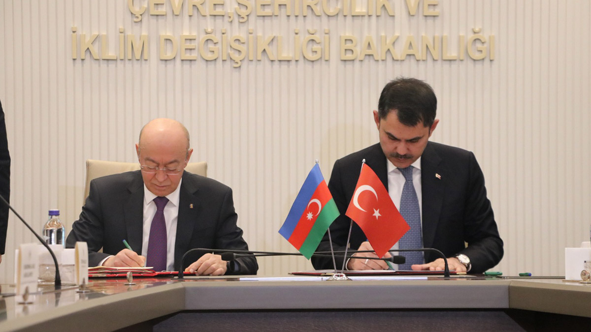Çevre, Şehircilik ve İklim Değişikliği Bakanı Murat Kurum ile Azerbaycan Olağanüstü Haller Bakanı Kemaleddin Haydarov, Türkiye ve Azerbaycan arasında inşaat mutabakatını imzaladı.