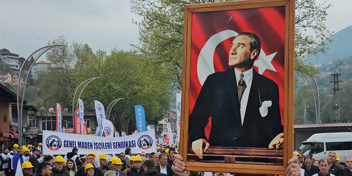 Tüm Emekliler Sendikası üyesi bir kadın ise tekerlekli sandalyesiyle kortej geçişine katılıp sendikasının bayrağını taşıdı. Üniversite öğrencileri, kentte 10 Kasım 2023’te yanmış cesedi bulunan kaçak bir ocakta madencilik yapan Afganistan uyruklu Vezir Mohammad Nourtani’nin fotoğrafını da taşıdı. Yürüyüş, Madenci Anıtı’nda sona ererken gruplar, şarkılar söyleyip sloganlar attı. Program, düzenleme komitesi üyelerinin konuşmalarıyla devam etti.