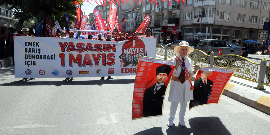 Edirne’de, 1 Mayıs Emek ve Dayanışma Günü kapsamında Emek ve Meslek Örgütleri 1 Mayıs Platformu tarafından yürüyüş düzenlendi, Saraçlar Caddesi’nde kutlama programı yapıldı. Atatürk Bulvarı üzerinde toplanan yaklaşık 1200 kişilik sivil toplum örgütü üyesi, cadde boyunca ellerinde pankart ve dövizlerle yürüdü. Korteje, vatandaşlar da alkış tutarak destek verdi. CHP Edirne Milletvekili Baran Yazgan ve Edirne Belediye Başkanı Filiz Gencan Akın’ın da katıldığı yürüyüşün ardından program, trafiğe kapalı Saraçlar Caddesi’nde devam etti.