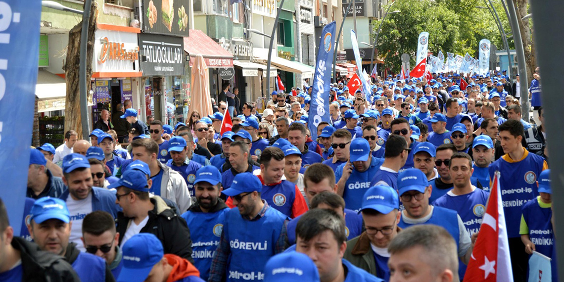1 Mayıs Emek ve Dayanışma Günü nedeniyle aralarında sendikalar, sivil toplum kuruluşları ve siyasi partilerin temsilcilerinin bulunduğu grup, İzzet Baysal Caddesi’nde toplandı. Yüzlerce kişi, yoğun güvenlik önlemleri altında ellerinde pankartlarla sloganlar eşliğinde caddede yürüdü. Çocuklar da anne ve babaları ile geldikleri yürüyüşte ellerinde flamalar taşıdı. Yürüyüşün sonunda güvenlik noktalarından geçen yüzlerce kişi, Kent Meydanı’nda müzikler eşliğinde halaylar çekerek 1 Mayıs’ı kutladı.