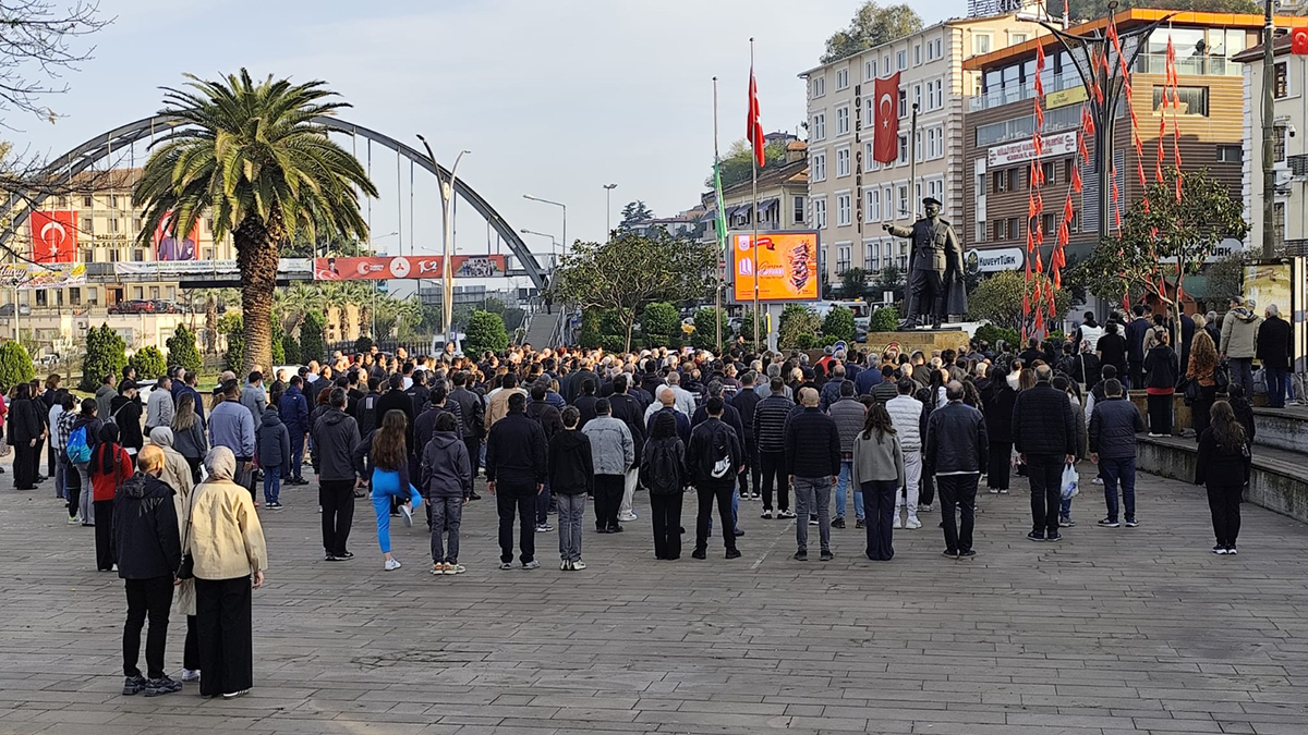 Trabzon’da Ulu Önder Gazi Mustafa Kemal Atatürk’ün hayata veda ettiği saat 09.05’te, hayat durdu. Kentin en işlek noktalarından Kahramanmaraş Caddesi’nde evine ve iş yerlerine gitmek için dışarıda olanlar, sirenlerin çalmasıyla beraber saygı duruşuna geçti. Çalışanlar iş yerlerinin önüne çıkarken, okullarda bulunan öğrenciler sokaklarda sıraya dizilerek Atatürk için saygı duruşunda bulundu. Bir araya gelen Düşünür Koleji öğrencileri, bedenleriyle saat oluşturup, Atatürk’ün hayatını kaybettiği ‘09.05’i yazarak ve sonsuzluk işareti koreografisi yaparak Büyük Önder Mustafa Kemal Atatürk’ü andı.