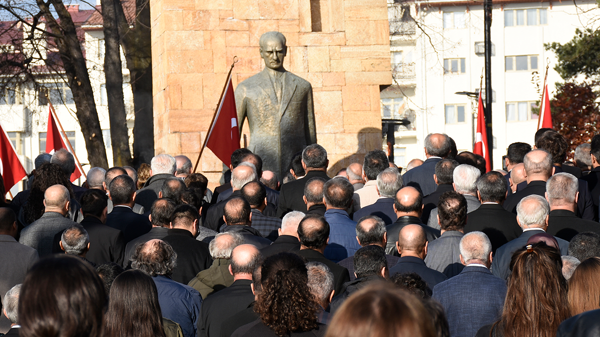 Türkiye Cumhuriyeti’nin kurucusu Ulu Önder Gazi Mustafa Kemal Atatürk, ebediyete irtihalinin 87’nci yıl dönümünde törenle anıldı. Atatürk’ün hayata gözlerini yumduğu saat 09.05’te kentin dört bir yanında sirenler çaldı. Trafikte olanlar araçlarını durdurup inerek saygı duruşunda bulundu. Caddede yürüyen vatandaşlar da sirenlerle birlikte saygı duruşuna geçti.