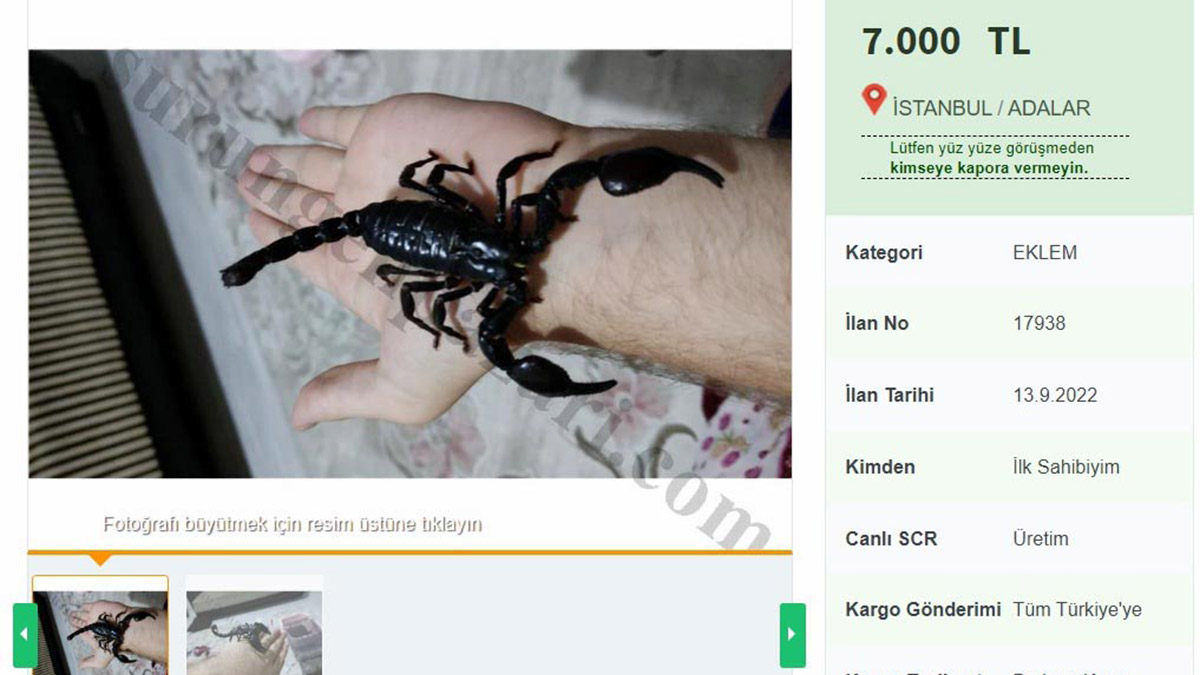 Akreplerini satışa çıkaran kişi ilanda, “Dişi-erkek adult (yetişkin) çift olarak satıyorum. Tamamen koleksiyonluk. Aşırı uysal. Zehir seviyesi çok düşük tür. Bakımı çok basit ve keyifli. Her ile kargo yaparım. Erkek genç, ömrü uzun” dedi.