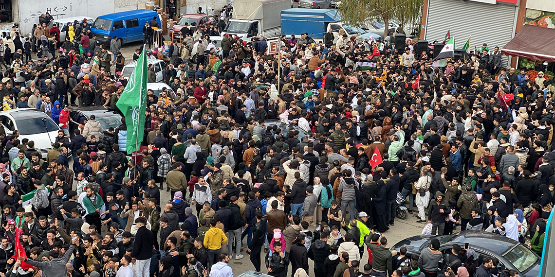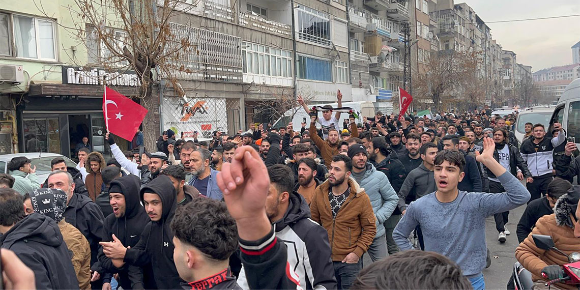 Gülistan Caddesi’nde toplanan Suriyeliler, muhalif grupların başkent Şam’a girmesi ve Beşar Esad yönetiminin kontrolü kaybetmesinin ardından kutlama yaptı. Özgür Suriye Ordusu bayrakları taşıyan grup, sık sık sloganlar attı. Polis ekipleri de herhangi bir olumsuzluk olmaması adına çevrede güvenlik önlemi aldı.