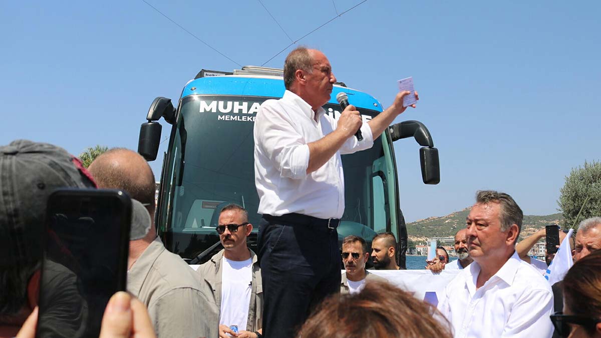 Muharrem İnce, meydandaki konuşmasının ardından parti otobüsüyle İzmir’in Dikili ilçesine gitmek üzere Foça’dan ayrıldı.