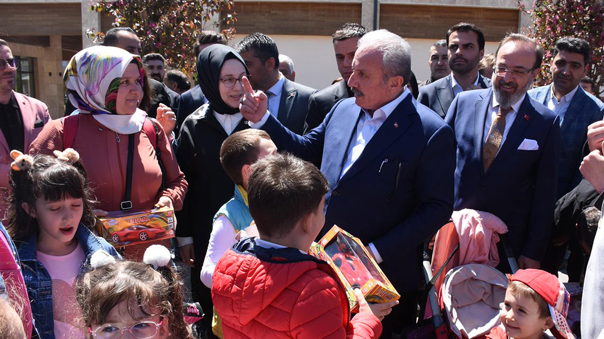 TBMM Başkanı Şentop, daha sonra Omurtak Caddesi’nde yapımı tamamlanan millet bahçesine giderek vatandaşlarla sohbet etti, çocuklara oyuncak dağıttı.