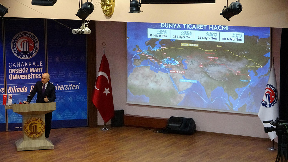 Bir dizi programa katılmak için Çanakkale’ye gelen Ulaştırma ve Altyapı Bakanı Karaismailoğlu, Çanakkale Onsekiz Mart Üniversitesi Terzoğlu Yerleşkesi’nde ‘Lojistik, Mobilite, ve Dijitalleşme Ekseninde Türkiye’nin Ulaşım Vizyonu’ konulu konferansa katılıp, öğrencilerle bir araya geldi.