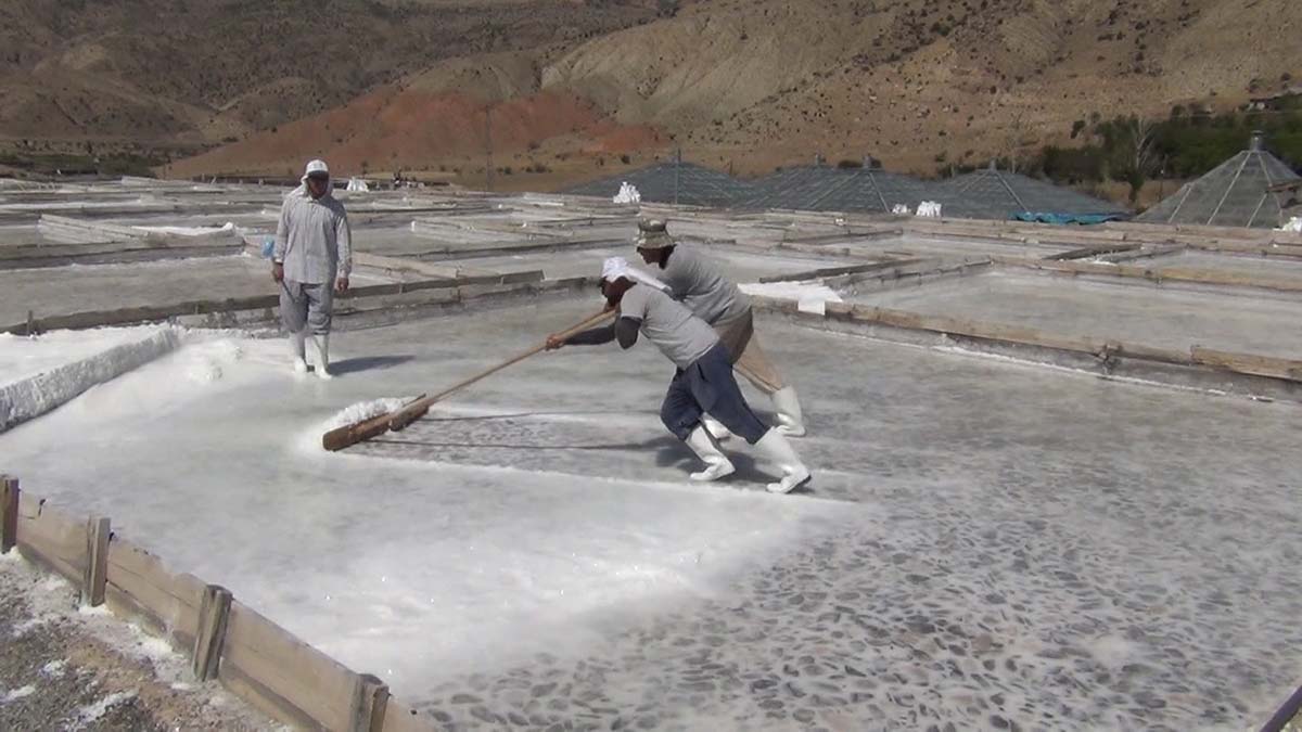 Erzincan’ın Kemah ilçesi Kömür köyünde doğal yöntemlerle çıkarılan ve coğrafi işaret belgesi olan tuz üretimi, hava sıcaklıklarının artması ile birlikte arttı.