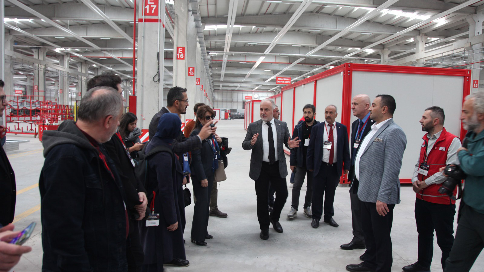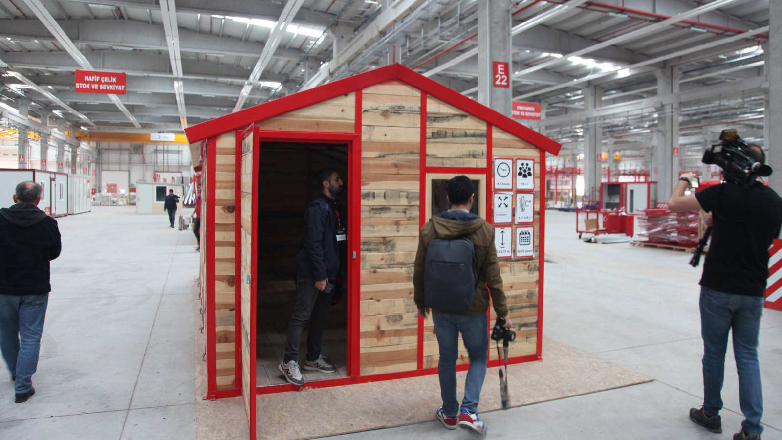 Bir türlü faaliyete geçememişti. Farklı amaçlarla kullanılmıştı ama en sonunda yangınlar, depremler çok değişik sebeplerle maalesef harap oldu ama onun yerine bu yeni bina yeni fabrika yükseldi. Burada ne yapıyoruz? Burada Kızılay modüler yapı sistemleri üretiyor. Ön üretimli prefabrik, yapı sistemleri üretiyor, hafif çelik malzemeyle ve farklı malzemelerle kompozitinden ahşabına panel saçlarına kadar çok farklı ürünlerle birleştirilmiş barınma sistemleri üretiyor.