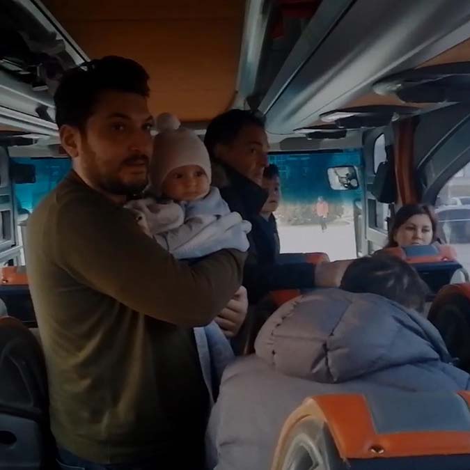 Kiev’den 3 otobüsle yola çıkan ilk 120 kişilik kafile, Romanya sınırına ulaştı.
