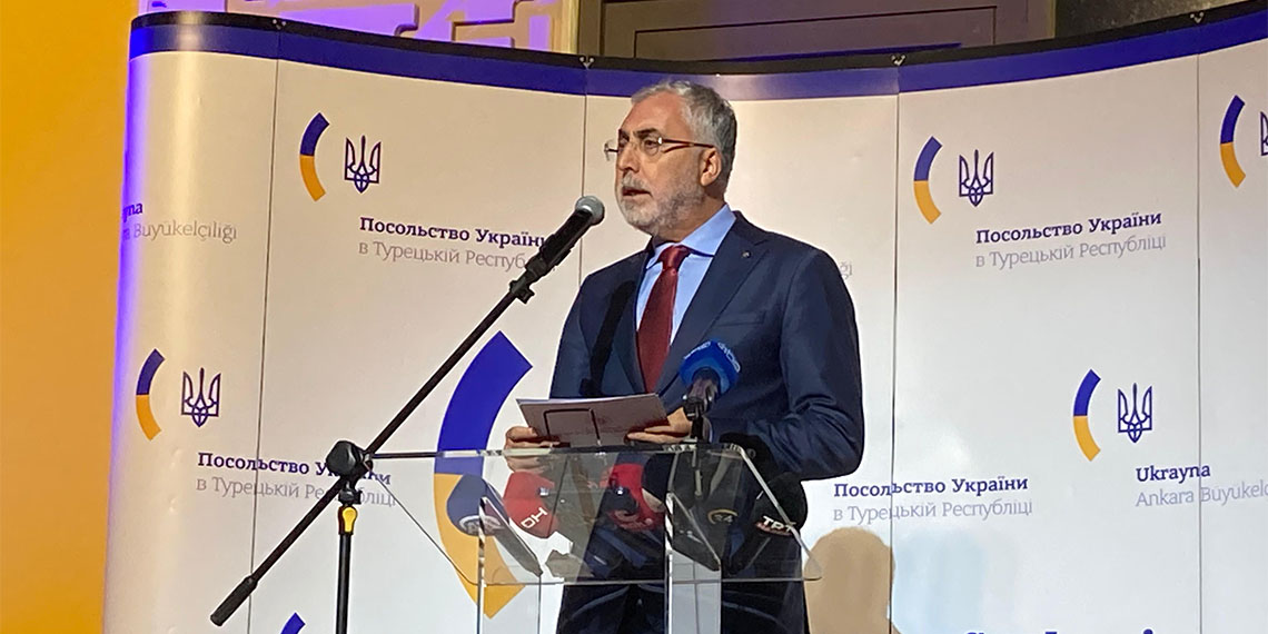 Türkiye ile Ukrayna arasındaki iş birliği ve dostluğun uzun vadede giderek güçleneceğinden hiç şüphemiz yoktur. Vatandaşlarımız adına Sayın Büyükelçi’ye ve Ukrayna’nın Ankara Büyükelçiliği’nin tüm çalışanlarına, Türk-Ukrayna ilişkilerinin daha ileri bir noktaya taşınması yönündeki değerli katkılarından ötürü çok teşekkür ederim. Öncelikle Cumhurbaşkanımız Sayın Recep Tayyip Erdoğan’ın selamlarını ve iyi dileklerini sizlerle paylaşmak istiyorum. Komşumuz, stratejik ortağımız ve dostumuz olan Ukrayna’nın kalbimizde çok özel bir yeri vardır. Bu vesileyle, Türkiye’nin Ukrayna’nın toprak bütünlüğünü, egemenliğini ve bağımsızlığını desteklemeye devam ettiğini bir kez daha ifade etmek isterim. Ukrayna’nın davasında haklı olduğu bu savaşın sona ermesi için, uluslararası hukuk çerçevesinde elimizden gelen tüm desteği vermeye devam edeceğiz” ifadelerini kullandı.