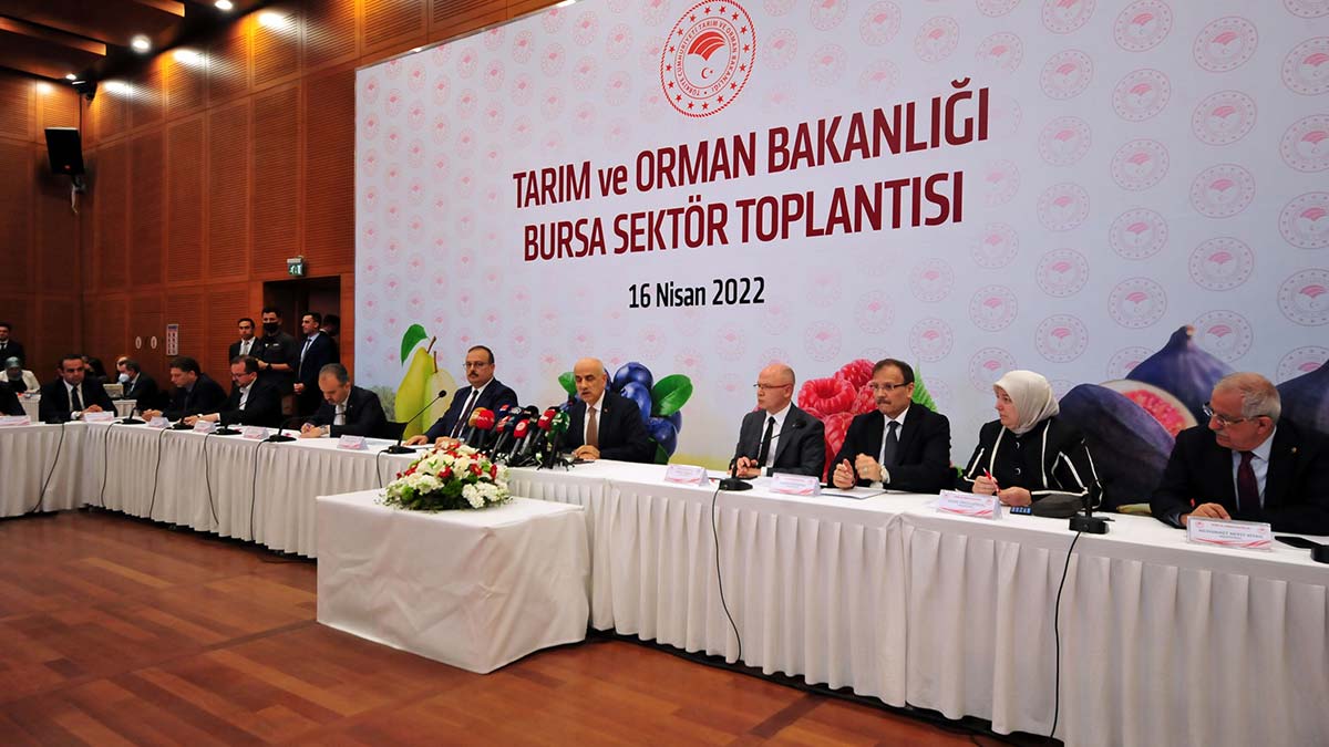 Bir dizi ziyaretlerde bulunmak üzere Bursa’ya gelen Tarım ve Orman Bakanı Vahit Kirişçi, burada sektör temsilcileriyle buluştu. Kirişci başkanlığında, Merinos Atatürk Kongre ve Kültür Merkezi’nde (AKKM) düzenlenen toplantıya Vali Yakup Canbolat, Büyükşehir Belediye Başkanı Alinur Aktaş, AK Parti Bursa milletvekilleri, AK Parti İl Başkanı Davut Gürkan ile ziraat odaları, kooperatif başkanları ve Süt ve Et Üreticileri Birlik Başkanları yer aldı.