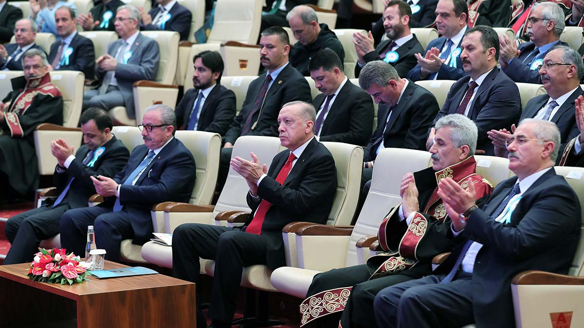 Hukuk devleti ilkesi çerçevesinde vereceği her mücadelede yargı mensuplarının yanlarında olacaklarını belirten Erdoğan, “Hukuk devleti ilkesi demokrasinin olmazsa olmaz şartıdır. Ülke yönetimine geldiğim günden beri Türkiye’nin hukuk devleti niteliğini güçlendirmenin mücadelesini veriyorum. Yaptığımızı reformlarla anayasadan yasalara, idari uygulamalardan uluslararası sözleşmelere kadar geniş bir alanda hukuk devletinin tahkim ettik. Aslında ülkemizi yeni, tamamen demokratik yaklaşımla ve yalın dille yazılmış yeni bir anayasaya kavuşturmak için TBMM bünyesinde defalarca teşebbüste bulunduk. Maalesef bu teşebbüsümüz, muhalefet partilerinin süreci tıkayan uzlaşmaz tavrı nedeniyle akamete uğradı” dedi.