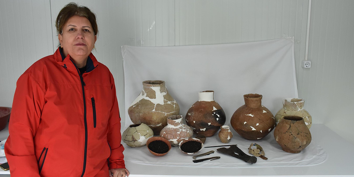 Prof. Dr. Çevik, “Bu yılki bulgularımızda özellikle kazdığımız bazı binalar var. Bunlar günümüzden 7 bin 800 yıl öncesine ait binalar. Özelikle bu sene yanmış bir binanın içerisinde geniş bir envanter ele geçirildi. Bu buluntuların, bilinçli olarak kapatılmış olduğunu düşünüyoruz. Burada 10’dan fazla kap ele geçirildi. Bol miktarda tahıl bulundu. Kaplumbağa kabuğu ve altında spatula ile 2 orak bulundu. Ayrıca sığıra ait kürek kemiği bulduk. Binanın tabanı içinde adeta paket gibi bırakılmış durumdaydı. Rastlantısal bir buluntu olmalarından ziyade, binanın bilinçli olarak yakılıp, tabanına da belli nesnelerin bilinçli olarak bırakıldığını düşünüyoruz” diye konuştu.