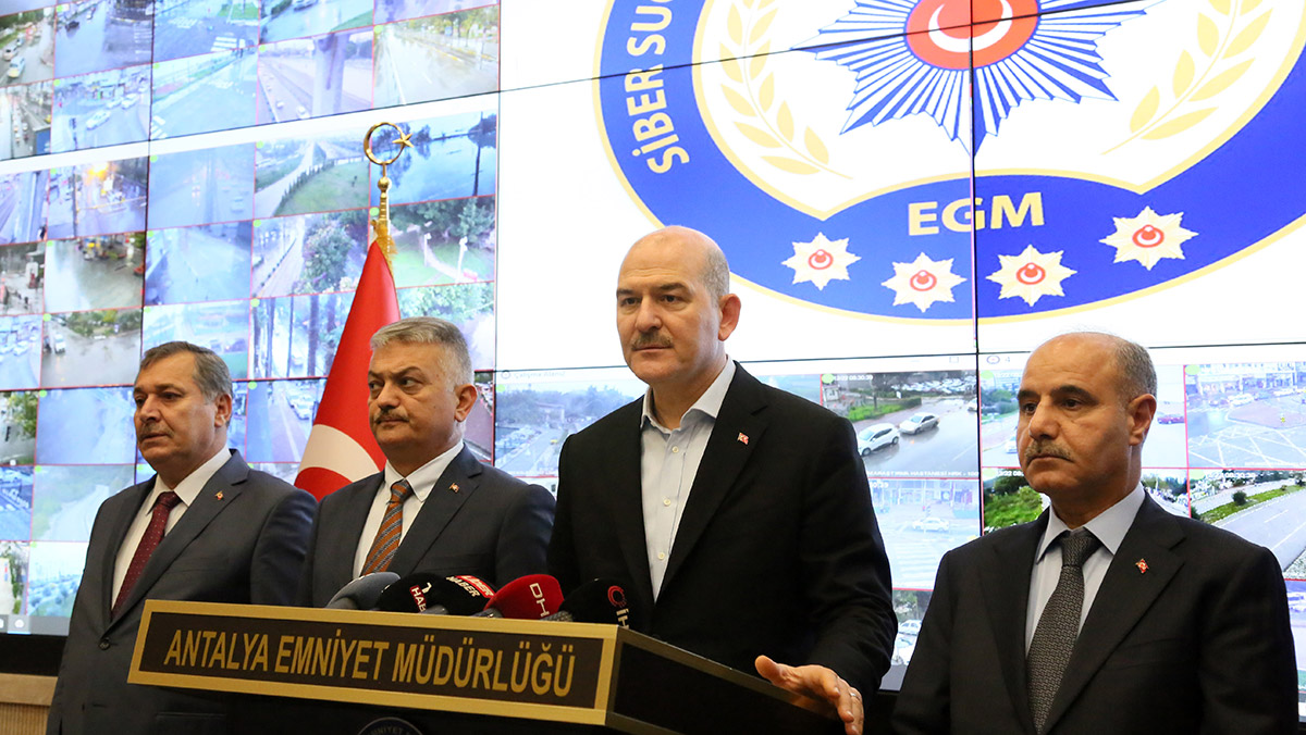 Bakan Soylu, “Dün geceden itibaren başlayan yağmurun etkisiyle sele dönüşen ve hayatı etkileyen Antalya’nın Kumluca, Finike ve diğer ilçelerinde önemli ölçüde gerek tarım arazilerimiz, gerek esnafımızın zararlarıyla karşılaşılan bir sel yaşamıştık. Bugün daha önce planladığımız bir operasyon söz konusuydu. Bunu kamuoyuyla paylaşmak için de Antalya Emniyet Müdürlüğü binasındayız” dedi.