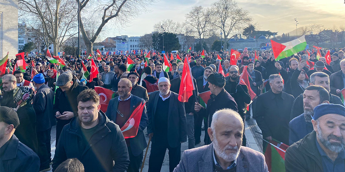 Program Kuran-ı Kerim tilavetiyle başladı. Meydanı dolduran kalabalık ellerinde Türkiye ve Filistin bayraklarıyla slogan atarak İsrail’i protesto etti. Protokol konuşmalarının ardından iftarlık dağıtıldı ve vatandaşlar orucunu birlikte açtı.