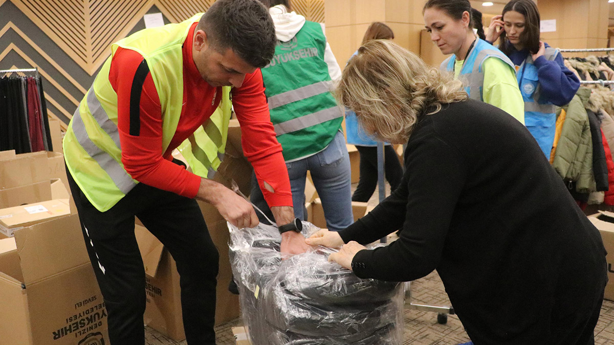 Herkesin bir yakını depremde hayatını kaybetti. Haberi aldığımızdan bu yana depremzedelere yardım etmeye çalışıyoruz. Sembolik olarak buradayım. Herkes burada mesai kavramı gözetmeden depremzedeler için gönüllü olarak çalışıyor. Buraya başka hakem arkadaşlarımız da geliyor. Yardımcım Osman Gökhan Bilir ile sürekli buradayız. Burada sen ben yok, biz varız. İnanılmaz bir ekip, gönüllü ordusu var. Burada yeni kıyafetleri bedenlerine göre ayırıyoruz. Daha sonra mağazaya aktarıyoruz. Depremzedelere seçtikleri ürünleri veriyoruz” ifadelerini kullandı.
