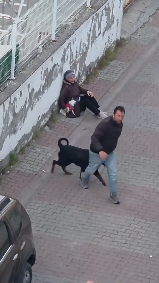 Ümraniye’de sahibinin ağızlıksız gezdirdiği rottweiler cinsi köpek, bir kadının yanındaki küçük ırk köpeğe saldırdı.
