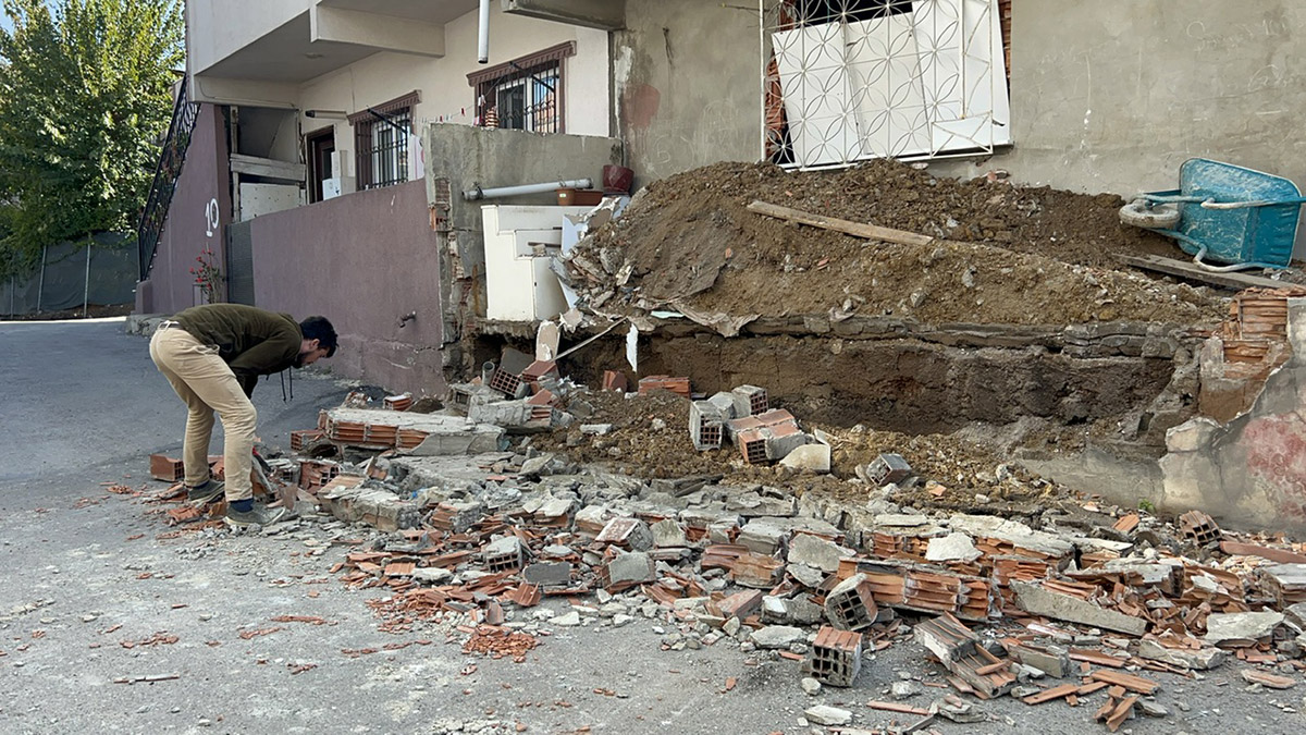 İhbar üzerine olay yerine polis, itfaiye ve sağlık ekipleri sevk edildi. Çevredekilerin yardımıyla duvarın altında kalan ayağı kurtarılan Mürteze, olay yerine gelen sağlık ekipleri tarafından ambulansla hastaneye götürüldü. Mürteze’nin sağlık durumunun iyi olduğu öğrenildi.
