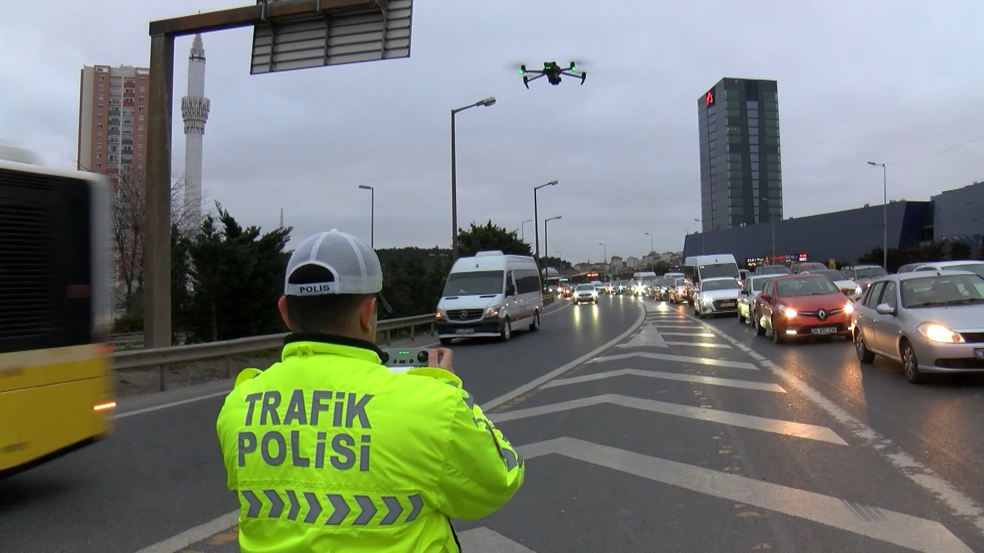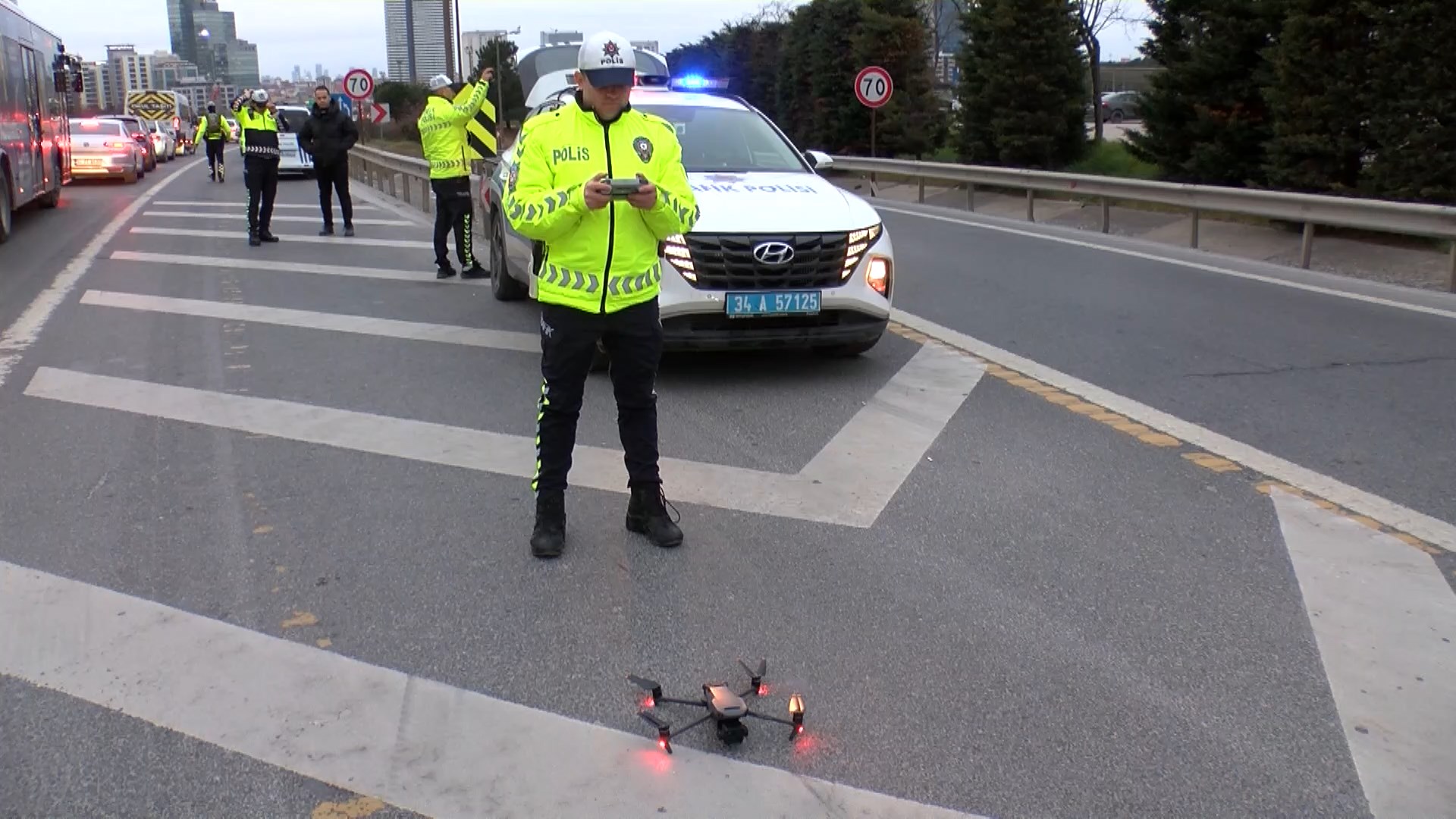 İstanbul Emniyet Müdürlüğü Trafik Denetleme Şube Müdürlüğü ekipleri, kent genelinde ofset taralı alan ihlaline yönelik denetim gerçekleştirdi. Ümraniye Şile yolu Fatih Sultan Mehmet Köprüsü katılımında yapılan denetimlerde, taralı alanı ihlal eden araçlar dronla havadan takip edildi. Kural ihlali yaptığı belirlenen araçlar polis ekipleri tarafından kontrol noktasında durduruldu. Şerit düzenini bozarak ilerlediği ve trafikte ‘kaynak’ yaptığı tespit edilen 9 sürücüye 9 bin lira idari para cezası kesildi.
