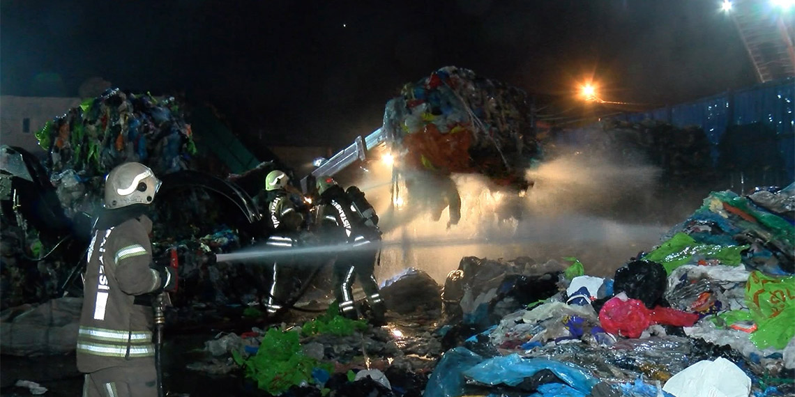 Ümraniye’de iki farklı katı atık depolama merkezinde aynı anda yangın çıktı. Yangın işçilerin kaldığı konteynerlere sıçramadan kontrol altına alındı.