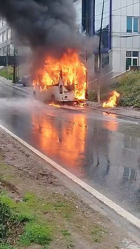 Yangın, saat 10:45 sıralarında Şerifali Mahallesi Turgut Özal Bulvarı'nda seyir halindeki 34 Lc 1203 plakalı servis minibüsünde çıktı. İddiaya göre seyir halindeki minibüsün şoförü aracın ön kısmından çıkan dumanları görüp aracı kenara çekti. Yangın kısa sürede büyüyerek aracı sardı. İhbar üzerine olay yerine itfaiye, polis ve sağlık ekipleri sevk edildi.