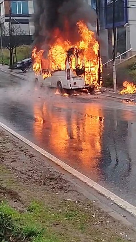 Yangın itfaiye ekipleri tarafından söndürülürken minibüs kullanılamaz hale geldi.