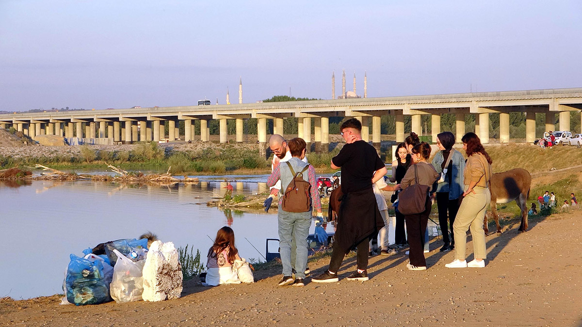 Edirne’de Trakya Üniversitesi öğrencileri, topluma hizmet dersini Meriç Nehri kıyısında temizlik yaparak işledi. Etkinlikte nehir kıyısında 20 çöp poşeti atık toplandı.