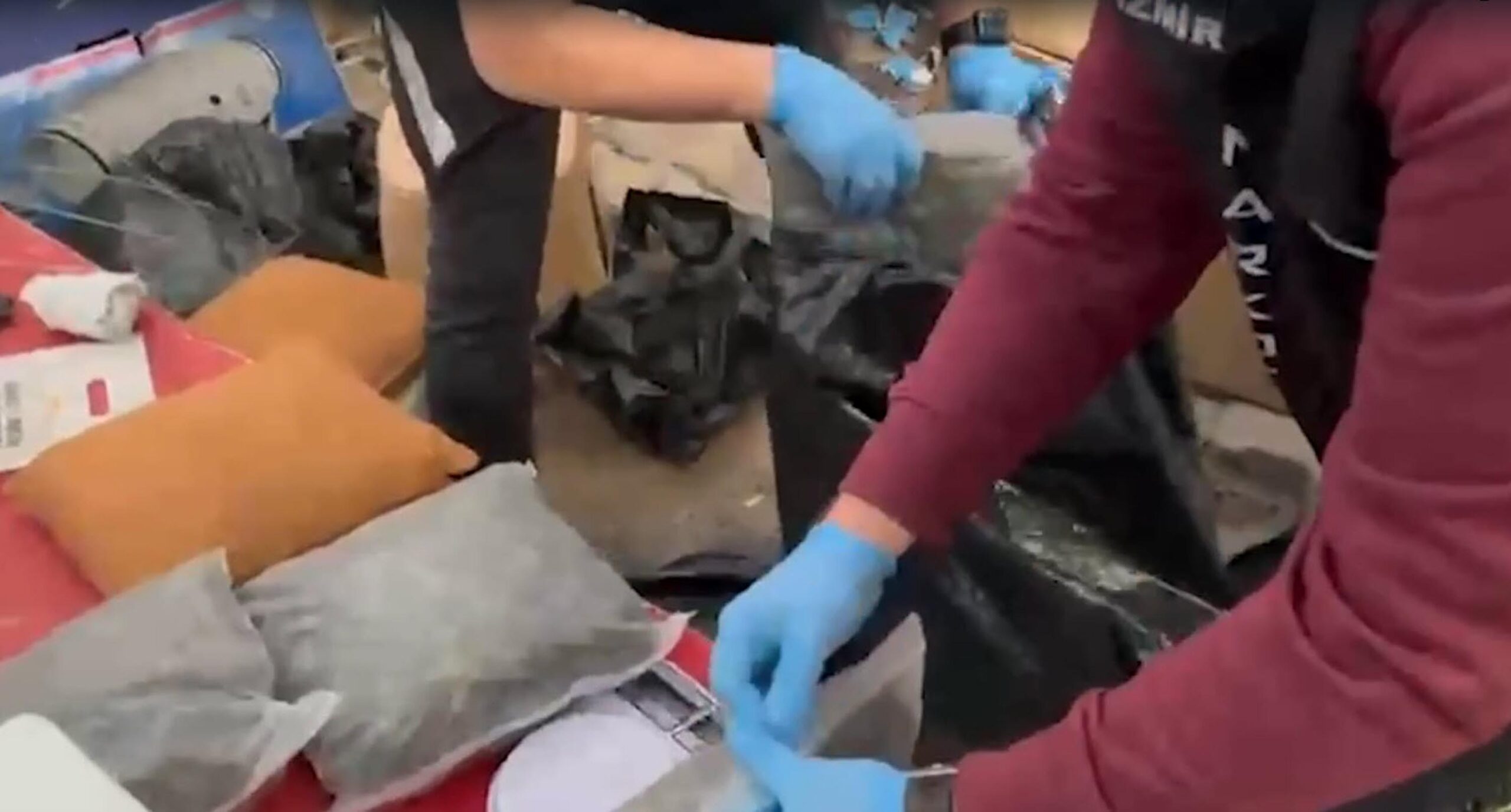 İzmir'in Menemen ilçesinde, operasyon yapılan evde uyuşturucular ve kenevir yetiştirme düzenekleri ele geçirildi, gözaltına alınan A.B. ve T.F. tutuklandı.