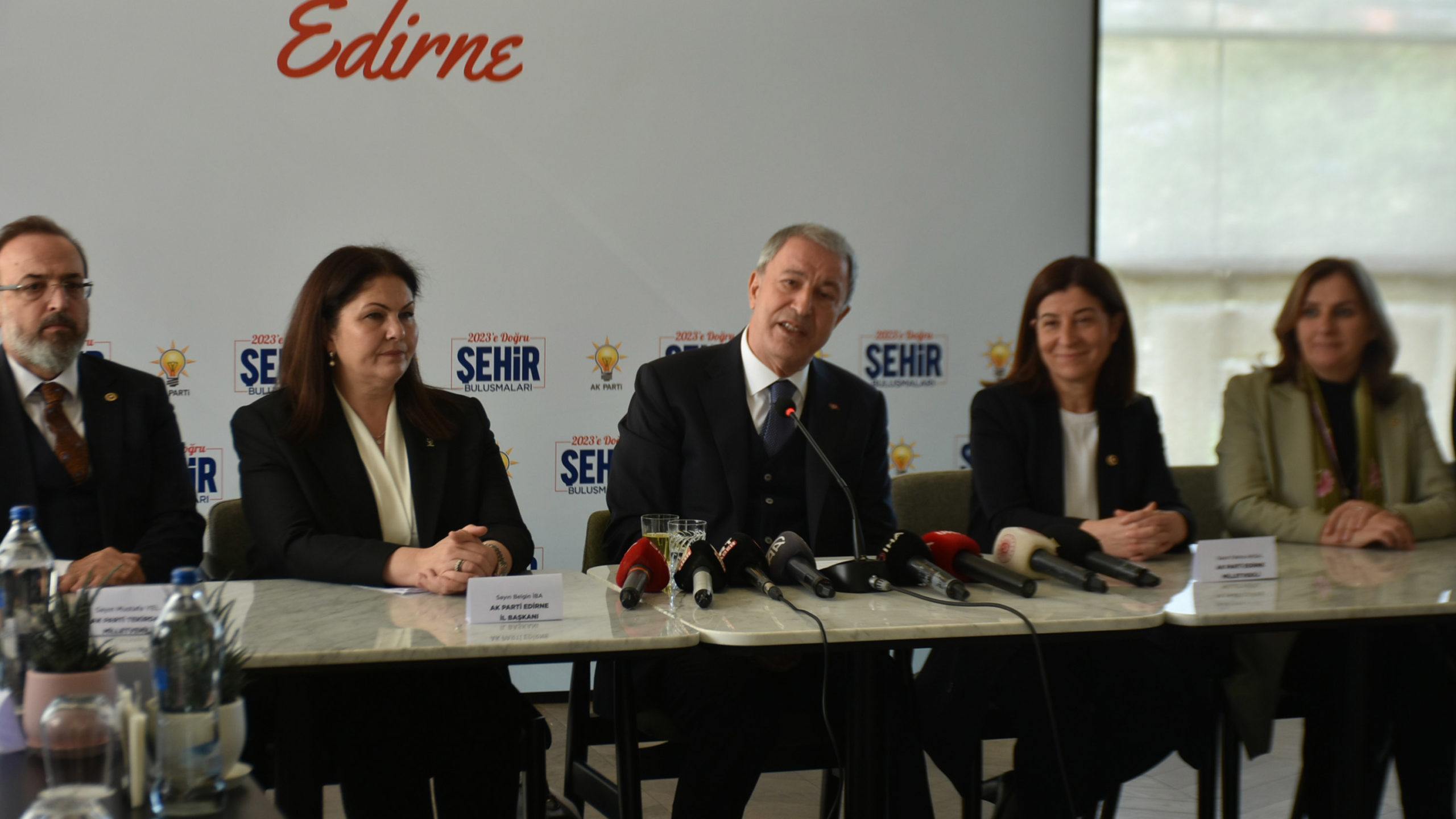 Milli Savunma Bakanı Akar, ‘2023’e Doğru Şehir Buluşmaları’ kapsamında Edirne’ye geldi. Kentte temaslarda bulunan Akar, ilk olarak bir otelde basın mensuplarıyla buluşarak gündemi değerlendirdi. Akar konuşmasında Yunanistan’dan, Türkiye’nin uzattığı barış elini tutmalarını beklediklerini ifade etti. Yunanistan ile iyi komşuluk ilişkileri çerçevesinde faaliyetlerini yürütmeye, sorunları barışçıl yönden çözmeye gayret gösterdiklerini belirten Akar, şöyle devam etti: