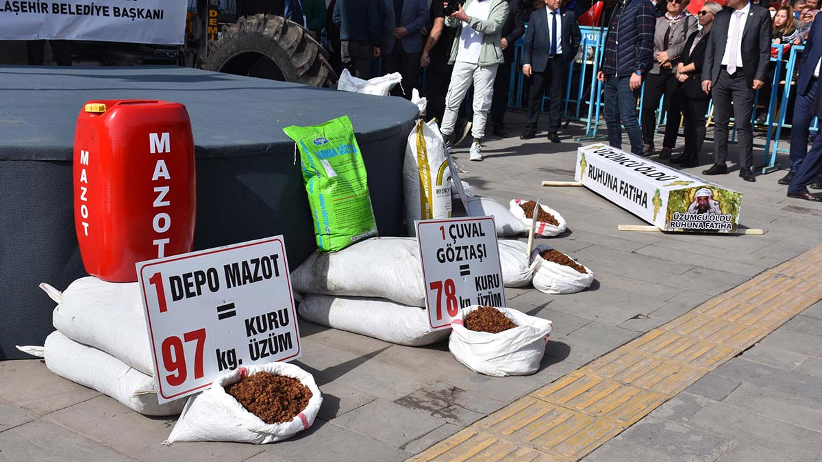CHP Genel Başkanı Kemal Kılıçdaroğlu, bir dizi ziyarette bulunmak amacıyla iki gün sürecek programı kapsamında Manisa’ya geldi. CHP Lideri Kılıçdaroğlu’nu Alaşehir ilçesindeki akaryakıt istasyonunda traktörleriyle karşılayan çiftçiler, mazot fiyatlarındaki artışa dikkat çekti. Kılıçdaroğlu, buradan Alaşehir Belediyesi’ne geçti. Ziyaretinin ardından Kemal Kılıçdaroğlu, belediye binasının önünde konuşma yaptı. Kılıçdaroğlu’nun konuşma yaptığı alanda ‘Üzümcü öldü ruhuna Fatiha’ yazılı iki adet temsili tabut ile fiyatlarıyla birlikte konulan un ve üzüm çuvalları, mazot fiyatları olduğu görüldü.