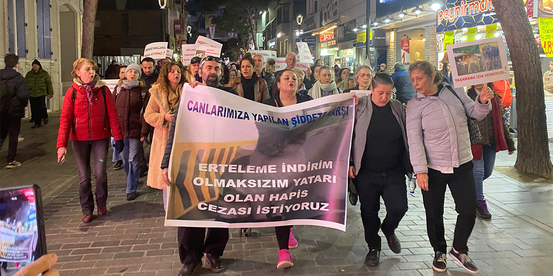 Yürüyüşün sonunda açıklamada bulunan Avukat Bilge Berk, “Geçtiğimiz ay Çiğli’de vicdansızca zehirlenen 13 köpeğimizin sesi olmak için hayvanseverlerle bir araya geldik. Bugün de İstanbul’da bir sitenin asansöründe 6 dakika boyunca işkenceyle öldüren Eros’un sesi olmak için buradayız. Zavallı Eros’u öldüren İbrahim Keloğlan’a hapis cezası istiyoruz. Sokaktaki canlarımıza yapılan şiddete karşı daha ağır cezalar istiyoruz. İndirimsiz ve ertelemesiz hapis cezası istiyoruz” dedi.